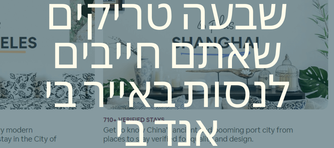 מצאתי לכם טריקים שווים שעשויים להוזיל לכם את הטיול, דרך האתר Airbnb, בצורה משמעותית, הטריקים עשויים לחשוף בפניכם מבצעים והנחות טובים יותר.