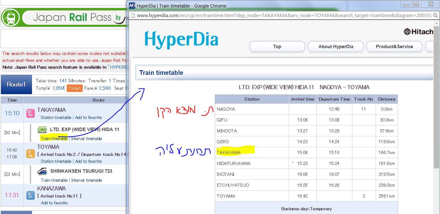 לנוסעים צפונה לאזור צפון הונשו/ הוקאידו ברכבת: השאירו את הכפתור של nozomi/mizuho/hayabusa מסומן! רכבת הhayabusa של קו הTohoku shinkansen שנוסע צפונה נכללת בפאס, ואתם יכולים להשתמש בה! לא ברור מדוע היא נכללת בכפתור הזה, זו כנראה פאשלה של היפרדיה.כמו כן – ניתן ברמת העיקרון לבטל את האופציה של private railways ואז יופיעו לכם רק קווים של JR – *אבל לא מומלץ לעשות זאת*. למה? משום שיש מסלולים שבהם חייבים לשלב גם מקטעים של רכבת פרטית, ואם תורידו את האופציה הזו ההיפרדיה ישתגע ויתן לכם מסלולים משוגעים וארוכים, כשלפעמים מדובר רק במקטע של חצי שעה ברכבת פרטית שעולה איזה 700 ין. לא שווה את הבלאגן.