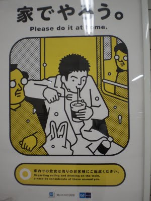 - לא מעשנים ! – מן הסתם כולנו יודעים שאסור לעשן ברכבת – ועדיין מתרגלים לחוק החדש שאסור לעשן אפילו ברציפים – אבל ביפן זה ברור מאליו שגם ברציפים לא מעשנים – בשביל זה יש חדרי עישון.