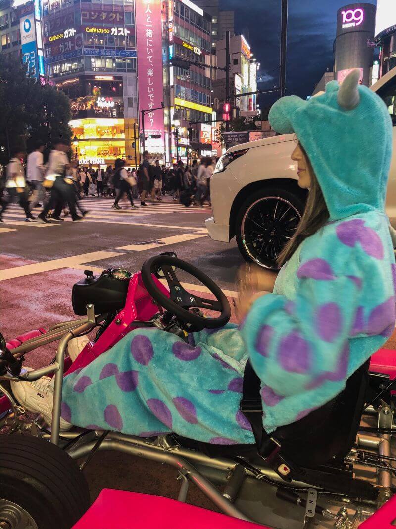 האטרקציה המדהימה הזו נקראת ״מריו קארט״, מדובר על חוויה אחת המוצלחות שהיו לנו בטיול, שבה נוהגים ברכב קארטינג ברחבי העיר בליווי מדריך. ביצענו הזמנו מראש דרך עמוד הפייסבוק שלהם (התשלום היה במקום). ניתן לבחור בין מספר מסלולים בכל מיני אזורים שונים בטוקיו וניתן לבחור את אורך המסלול. אנחנו בחרנו את המסלול של השעה (הקצר ביותר) , למעשה המסלול הרגיש לנו דיי קצר ולדעתי שעתיים זה האורך המתאים ביותר. החוויה עלתה לנו 7000 יין שזה בערך 225₪ ועוד 1000 יין של ביטוח שזה בערך 32 ש"ח. מחיר זה הוא מחיר מוזל הם גובים מעט יותר, במידה ואתם מבטיחים לדרג אותם ולכתוב ביקורת בסוף החוויה באחת מהרשתות החברתיות או בעמוד שלהם המחיר הוא זה שציינתי כאן. עשינו רישיון בין לאומי מיוחד ליפן מראש בממסי (memsi) שזה מה שהם דורשים באטרקציה. הרישיון עלה 16 ₪. כל החוויה של הקארטינג עסק לא זול אבל לגמרי שווה את זה אחת החוויות שהכי נהננו בטיול. אנחנו עשינו את המסלול בשיבויה, כשהגענו לשם שילמנו במזומן ושמנו את הדברים בלוקר. כל אחת קיבלה וואנזי מצחיק לנסיעה ויצאנו לדרך. היה לנו מדריך מדהים בשם טיבו, מדריך צרפתי מקסים. תוך כדי המדריך עשה לנו תמונות אווירה וצילם לאורך כל המסלול. חצינו במהלך המסלול את הShibuya Crossing שזהו מעבר חצייה ענק והעמוס ביותר בעולם.