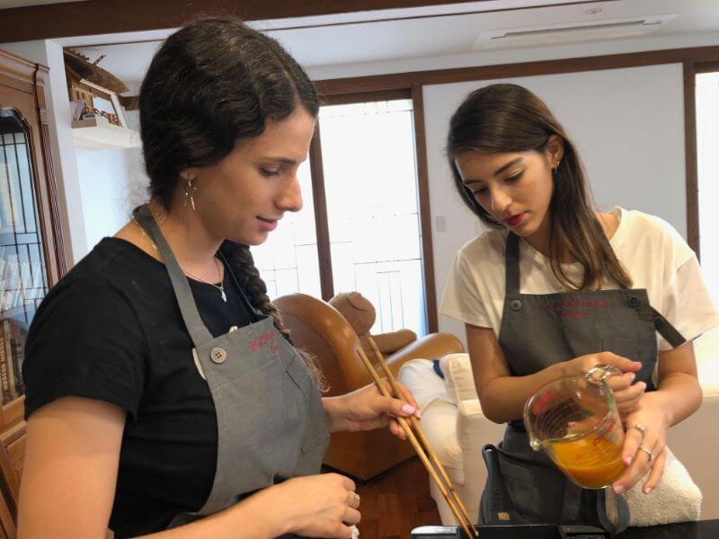 אני באופן אישי בכל מדינה שאני מגיעה אליה, אוהבת מאוד לעשות סיורים קולינריים או סדנאות בישול. אוהבת מאוד להכיר ולהתחבר למדינה דרך האוכל שלה. בסדנה למדנו לבשל אוכל יפני, הכנו 7 מנות קטנות. המורה הייתה מאוד נחמדה וחייכנית לפני שהתחילה הסדנה היא הסבירה לנו על התבלינים ועל החומרים שאנחנו עומדות להשתמש בהם ונתנה לנו לטעום. בנוסף, הסבירה על התבלינים ועל המאכלים המקולים והידועים ביפן. שילמנו לה מראש דרך האתר air bnb שם הזמנו את הסדנה, (אצרף קישור להזמנה). מילאנו מראש העדפות שלנו לאוכל, ציינו מאכלים שאנחנו לא אוהבות או לא מעוניינות בהם, אלרגיות וכו׳. בסוף הבישולים ובמהלך הארוחה היא ענתה על שאלות שלנו בשמחה ולימדה אותנו נימוסי שולחן יפנים (כי שאלנו אותה על הנושא), היה מעניין מאוד ומלמד. חוויה נחמדה ומתאימה למי שאוהב להכיר תרבויות דרך הבטן ולמי שאוהב לטעום מאכלים חדשים ולא שגרתיים.