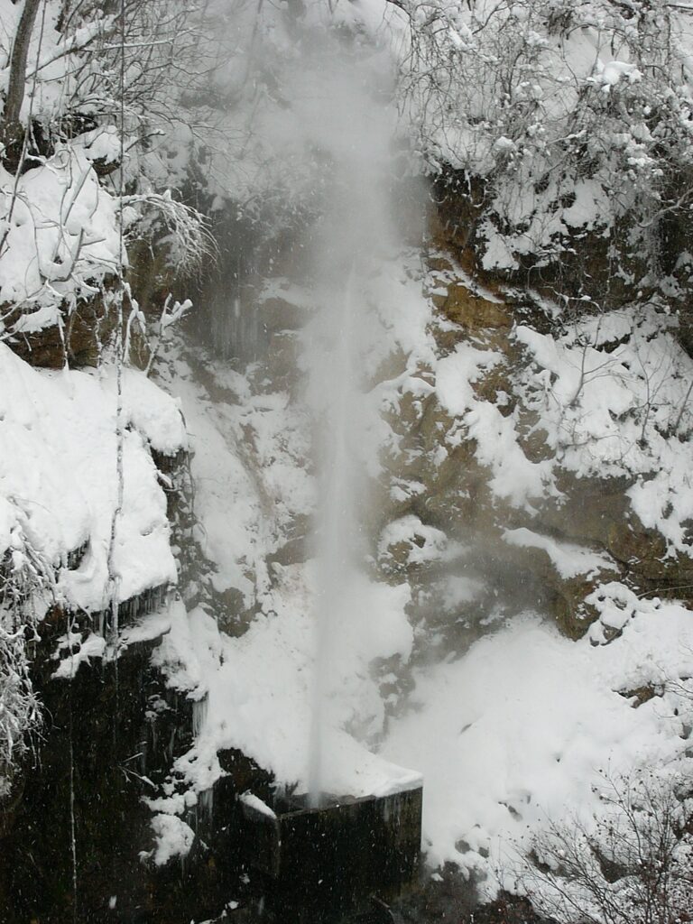 גייזר של מים חמים ואדים המתפרצים ומגיעים לגובה של עד 30 מטר. ניתן ליהנות מהמראה המרהיב מהמצפה, שם יש גם מתקן אמבט לרגליים.